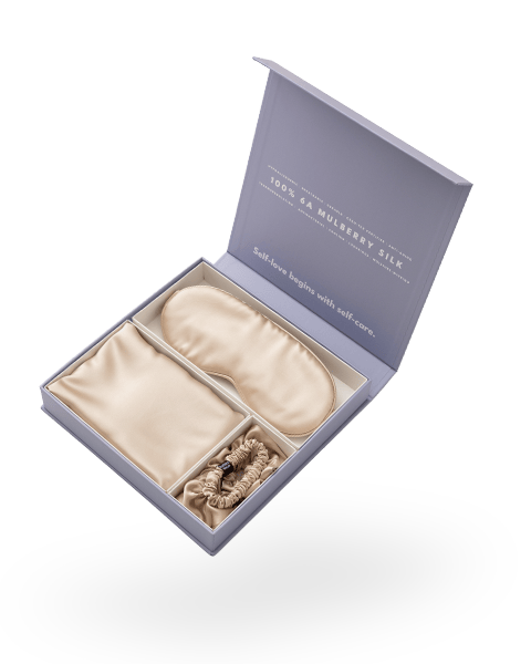 Kinkekomplekt – Siidist padjapüür lukuga + magamismask kinkekarbis